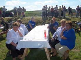 Wyruszyliśmy ze względów chorobowych w dwóch grupach. Jedna, ta liczebniejsza udała się do Chłopkowa i na początek naszym zielonym szlakiem rowerowym im. Dymitra Gorajskiego wspinała się na roztoczańskie wzniesienia. Druga, w liczbie tylko trzech uczestników pojechała do Hoszni Ordynackiej, skąd po krótkim marszu dotarła do pomnika poświęconego Hieronimowi Dekutowskiemu i jego oddziałowi. Tutaj rozpoczęła przygotowywać ognisko.