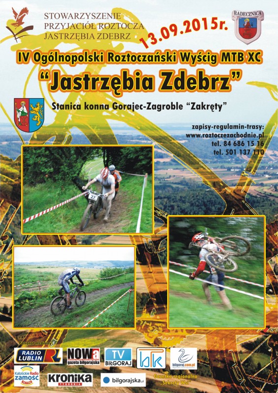 Serdecznie zapraszamy na IV Ogólnopolski Roztoczański Wyścig MTB „Jastrzębia Zdebrz” o puchar Starosty Zamojskiego który odbędzie się 13.09.2015 w miejscowości Gorajec Zagroble-Zakręty.